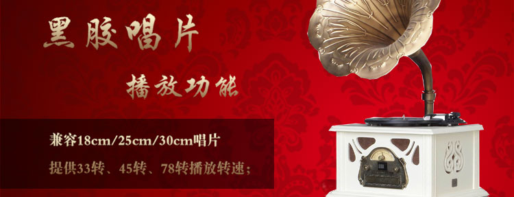 豪饰 仿古大喇叭电唱机 古典留声机 复古唱片机 USB音响 JS-01B