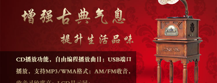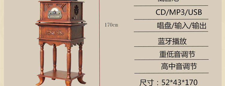 功能:收音FM CD/MP3/USB 唱盘/输入/输出 低音炮 重低音调节 高中音调节 蓝牙播放