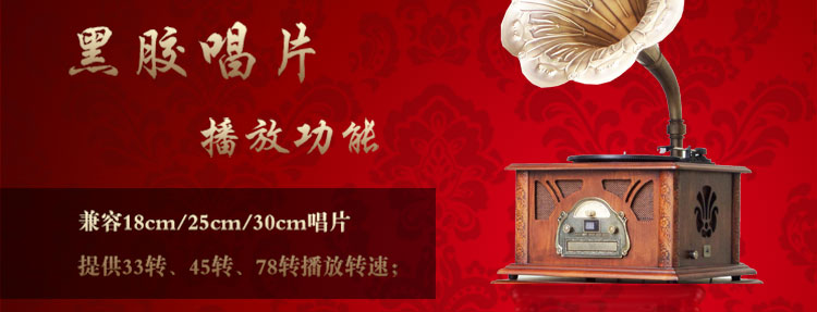 豪饰 留声机 复古黑胶唱片机 大喇叭电唱机低音炮cd机收音蓝牙 JS-02