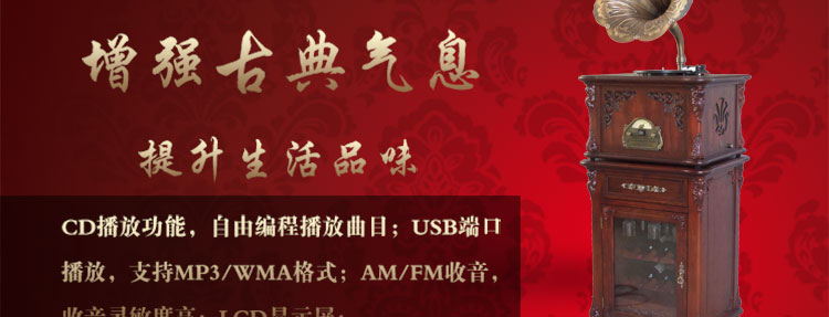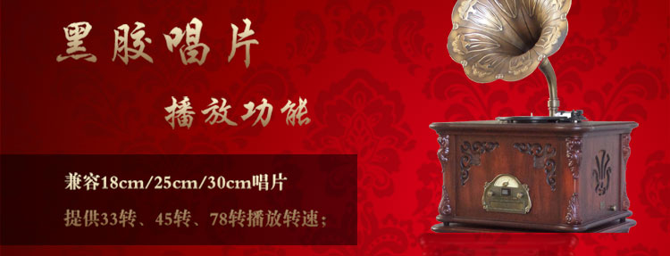 豪饰 实木老式电唱机留声机仿古LP黑胶唱片机大喇叭留声机CD机 JS-06