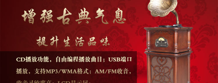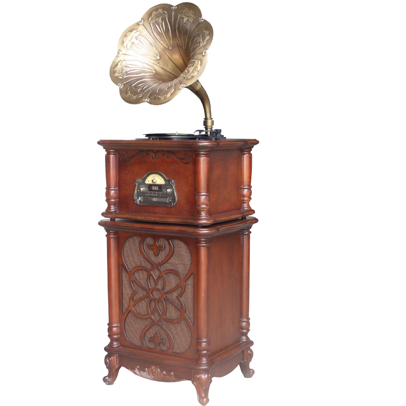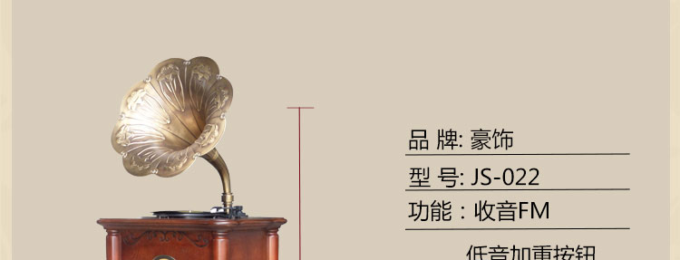 豪饰 欧式黑胶唱片机复古老式CD电唱机实木 大喇叭留声机仿古 JS-22