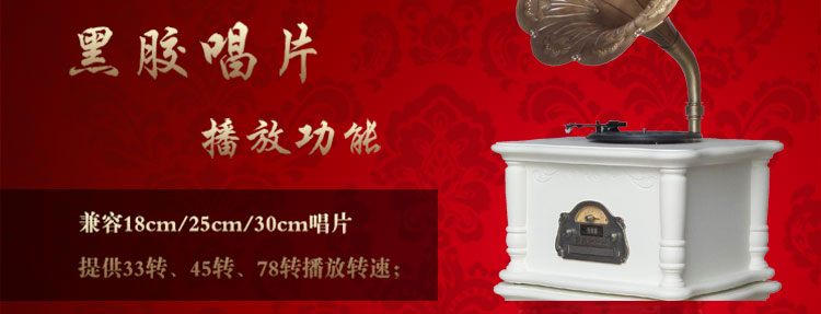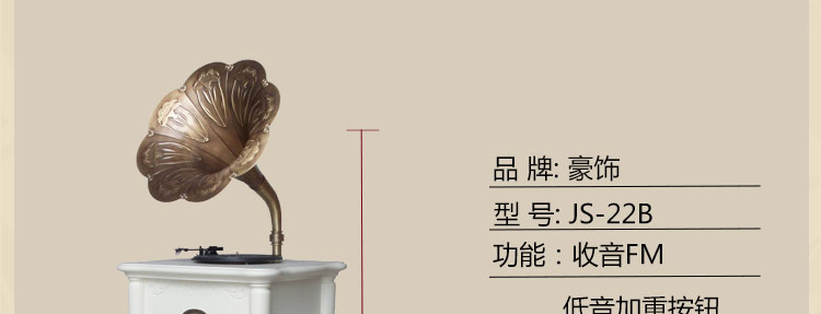 豪饰 实木手工复古仿古留声机 黑胶唱片机老式电唱机USB JS-22B
