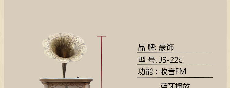 豪饰 老式留声机电唱机大喇叭仿古复古欧式留声机摆件全新黑胶唱机JS-22C