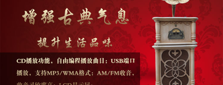 功能:收音AM/FM CD/MP3/USB 唱盘/输入 2.0音箱 低音加重按钮 高中音加重按钮 蓝牙播放
