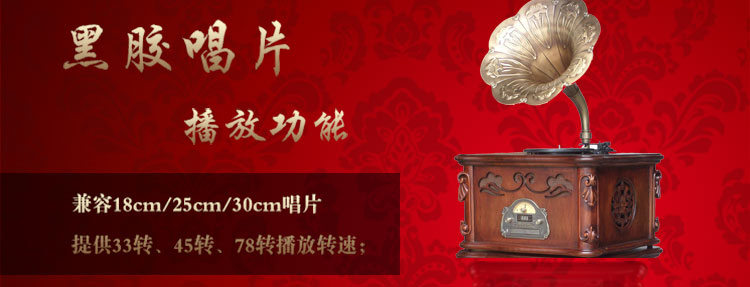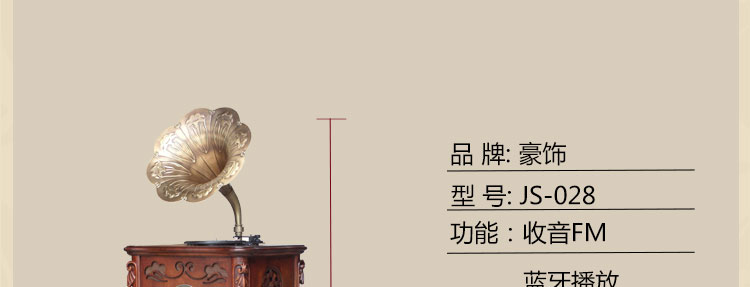 豪饰 实木蓝牙USB大喇叭留声机仿古黑胶唱片机复古电唱机 JS-28