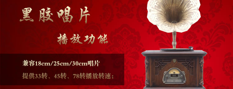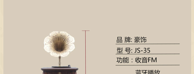 豪饰 欧式大喇叭复古仿古留声机黑胶唱片机CD机老式电唱机蓝牙 JS-35