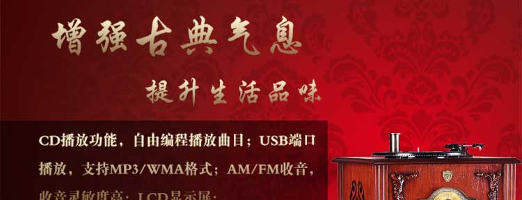 豪饰 仿古大喇叭电唱机 古典留声机 复古唱片机 USB音响 JS-03
