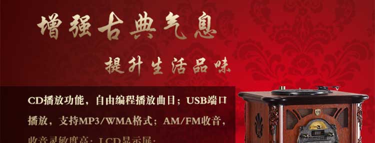 豪饰 仿古大喇叭电唱机 古典留声机 复古唱片机 USB音响 JS-92