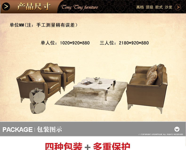 采用金属框架,经久耐用,表面材质多样可选,简约现代设计,奢华大气