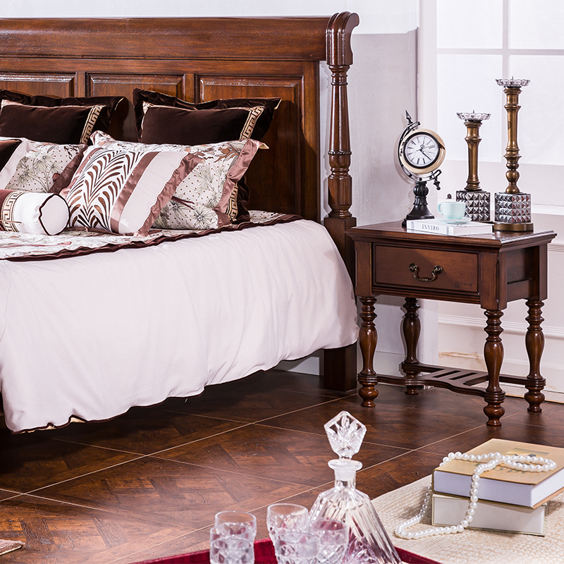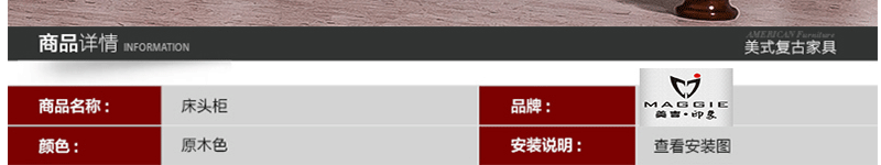 美吉印象 美式乡村欧式风格纯实木原木色床头柜