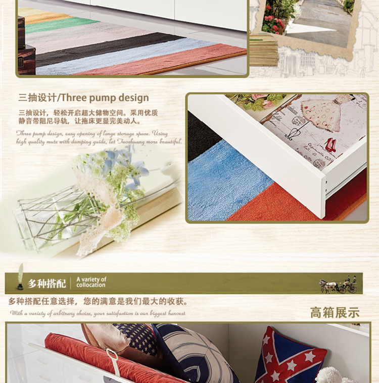 1】高端品质设计,时尚清新的地中海,非凡格调的设计风格,简约线条优美,优雅大气 ,严谨的工艺,奢华、高端大气、彰显高贵身份和品位。【2】采用进口橡木+环保高纤维板,环保板材,0甲醛,无异味保证【3】十八年金牌实体经营,工厂直销,支持线下体验