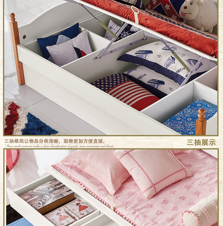 低碳贝贝地中海实木床K29橡木双人床美式乡村成人床气压高箱储物床1.2/1.5米床