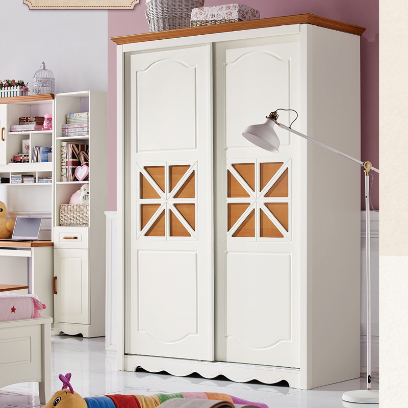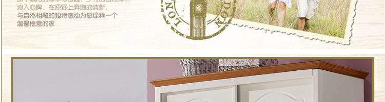 低碳贝贝D85-1美式地中海衣柜田园乡村风格家具趟门衣柜实木衣柜