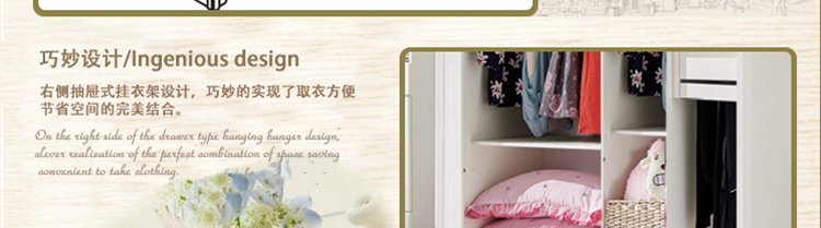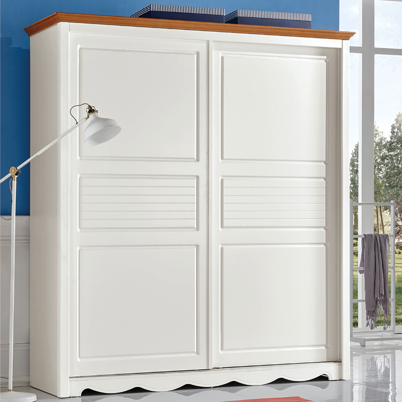 低碳贝贝D86-2美式实木简约现代衣柜实木卧室可移动白色橡木衣柜