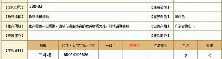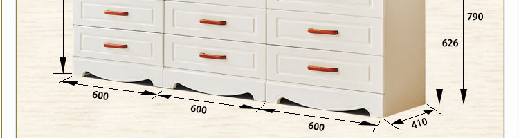 外围尺寸:三斗柜:600*410*626 四斗柜:600*410*790 五斗柜:600*410*955