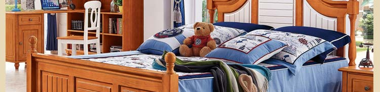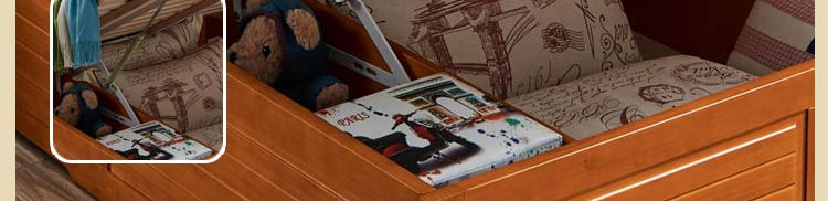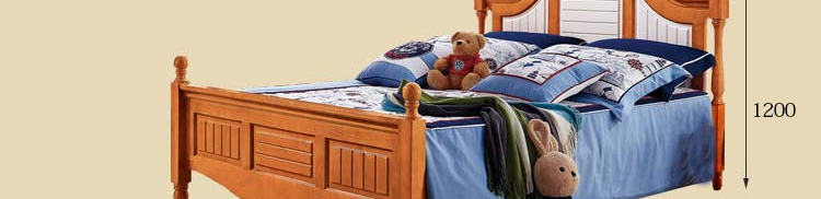 动漫居男孩女孩全实木床 美式风格高箱储物1.2米1.5米儿童床A2610