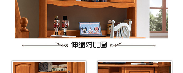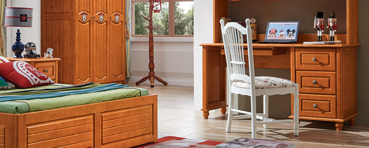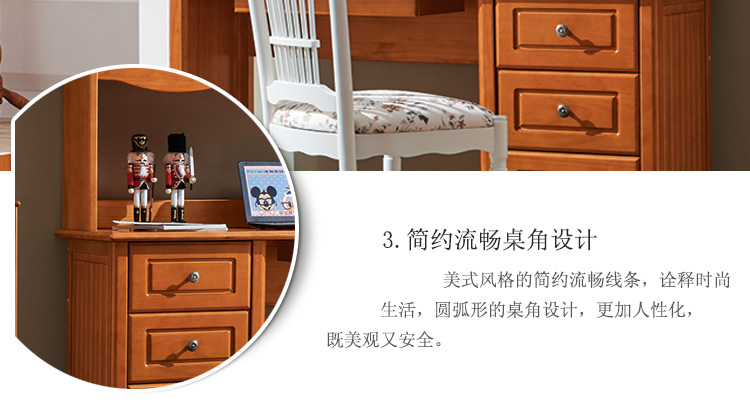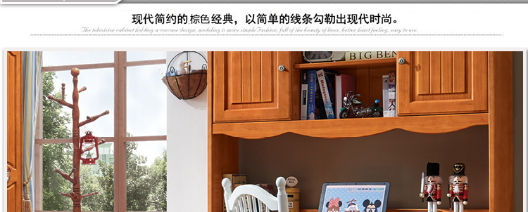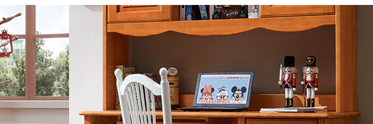动漫居实木框架儿童书柜 美式风格儿童房学习书柜书桌H2305