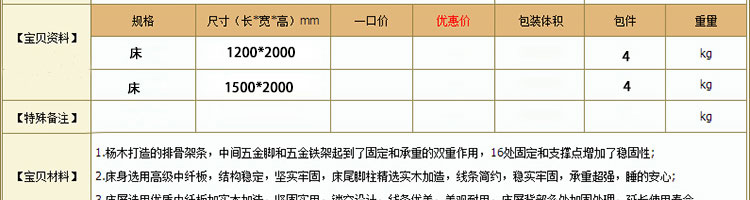外围尺寸: 床 1.2米 1.5米; B8902床头柜 480*410*510