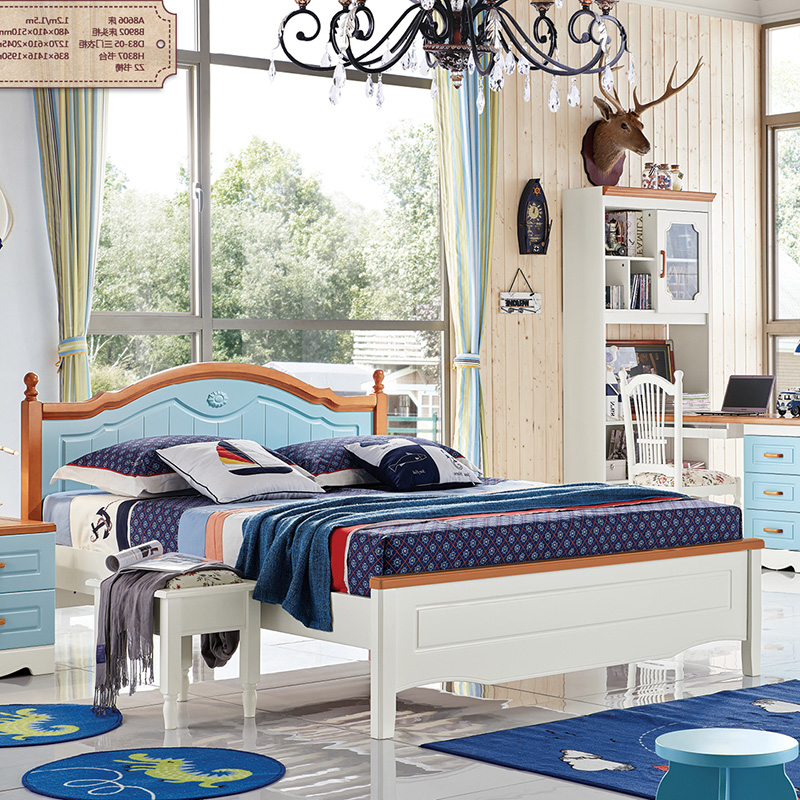 低碳贝贝A8606现代美式乡村双人床简约实木地中海 1.2/1.5双人床 橡木床8606