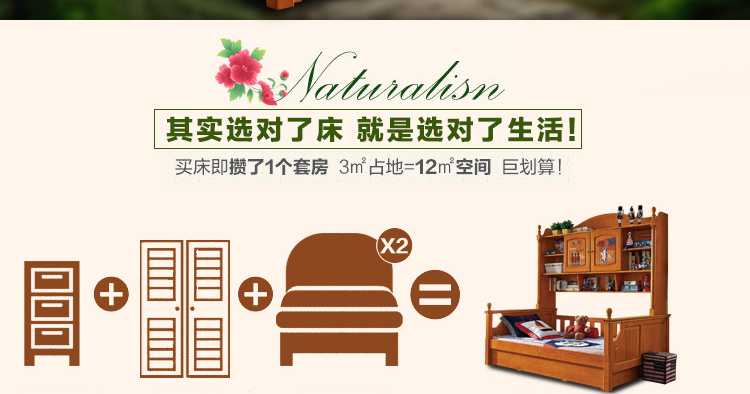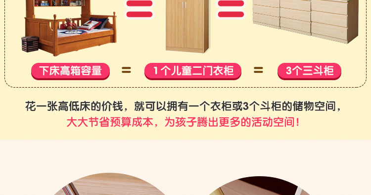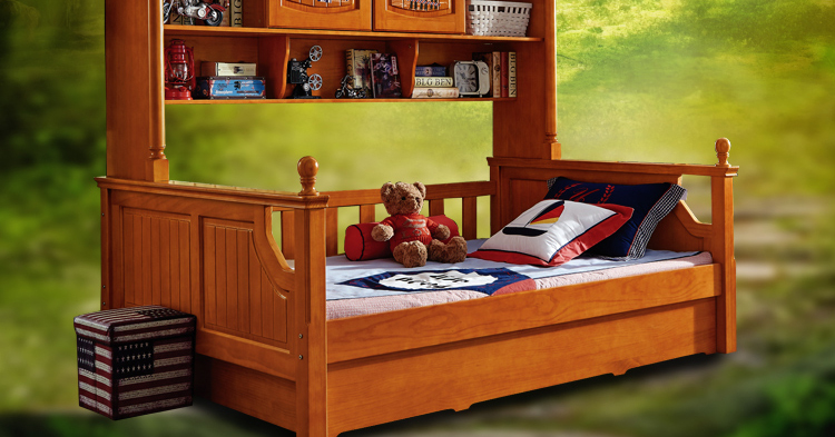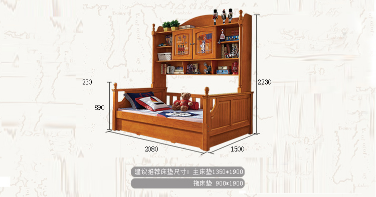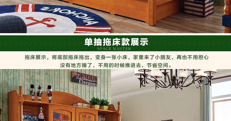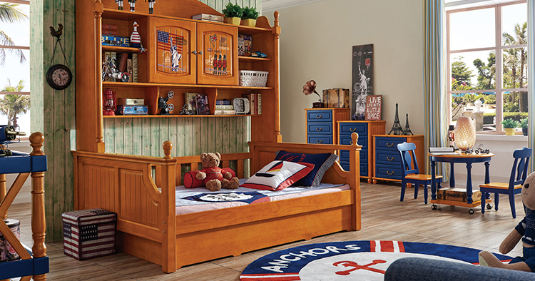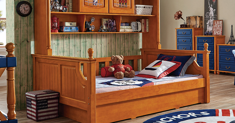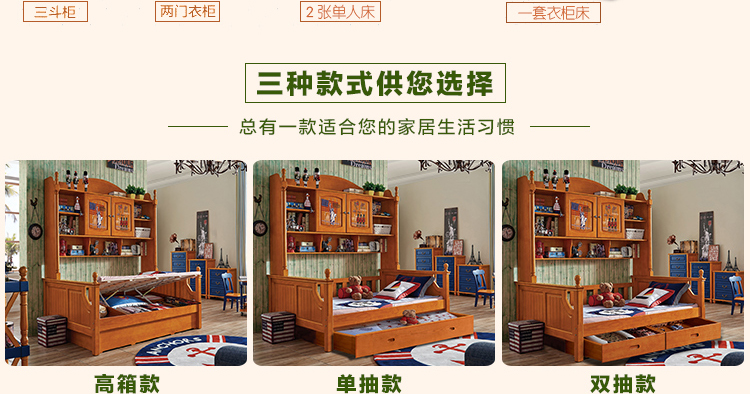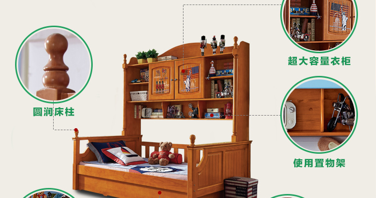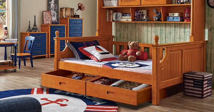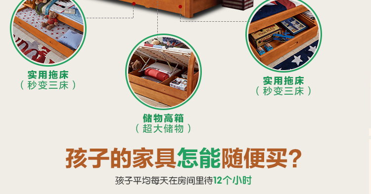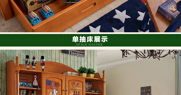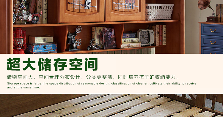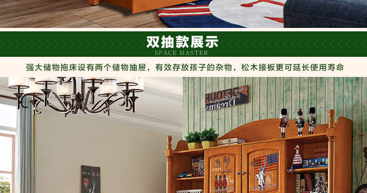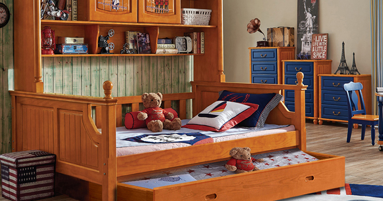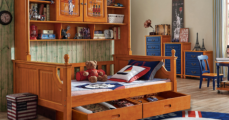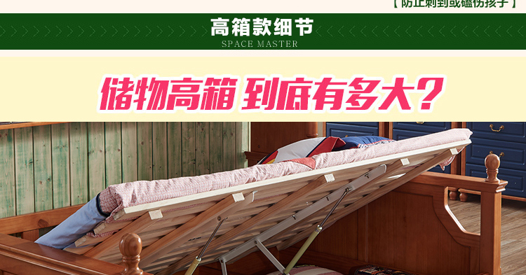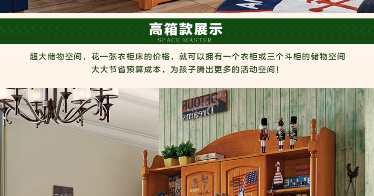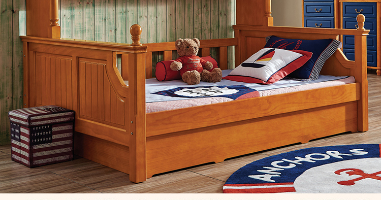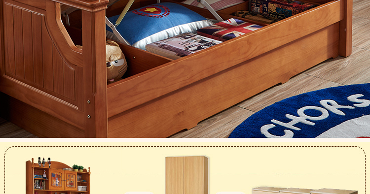 动漫居儿童组合床 实木美式风格系列高箱储物床K2206