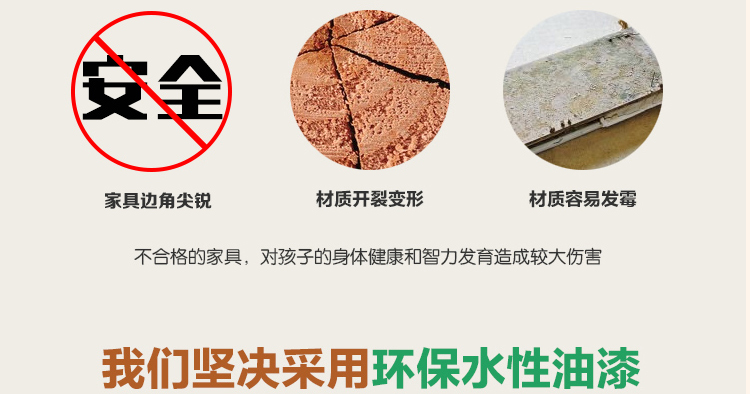 孩子的健康经不起试错,给孩子的必须是最好的,在销家具均经过严格的多项质量安全认证 品质保障承诺:材质保真、无忧质保