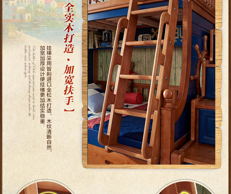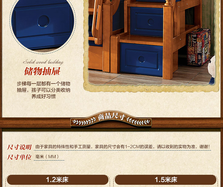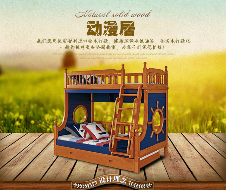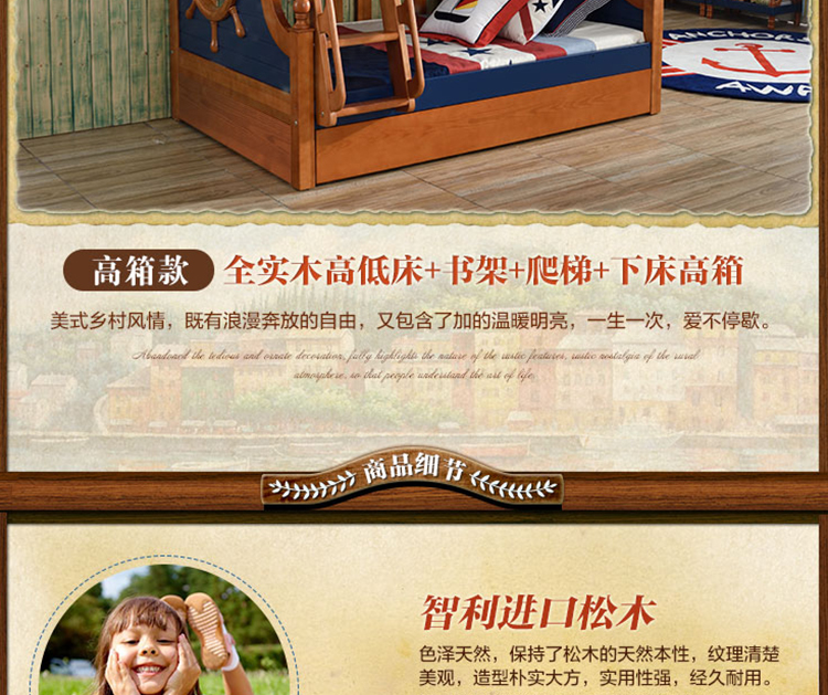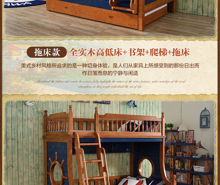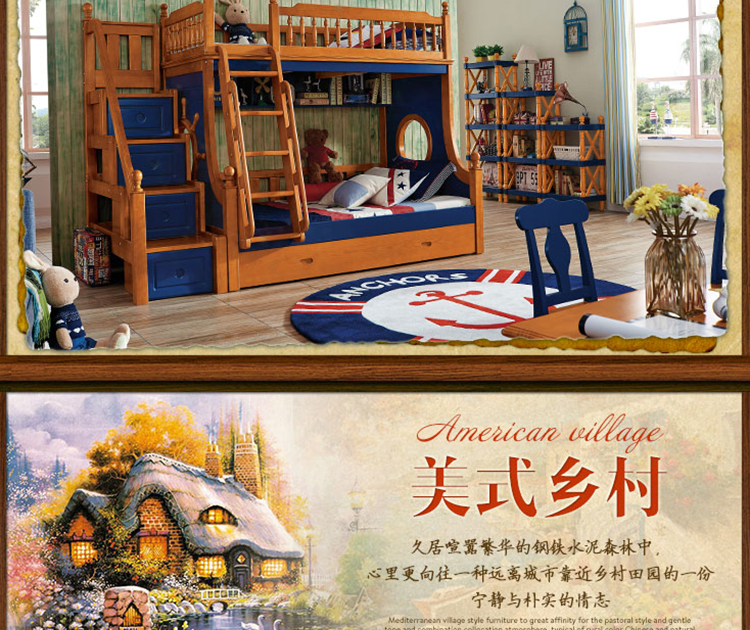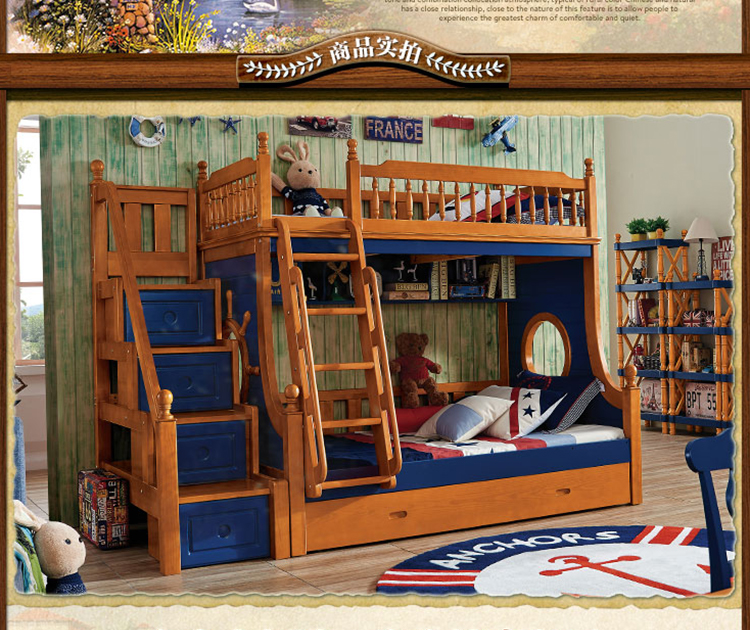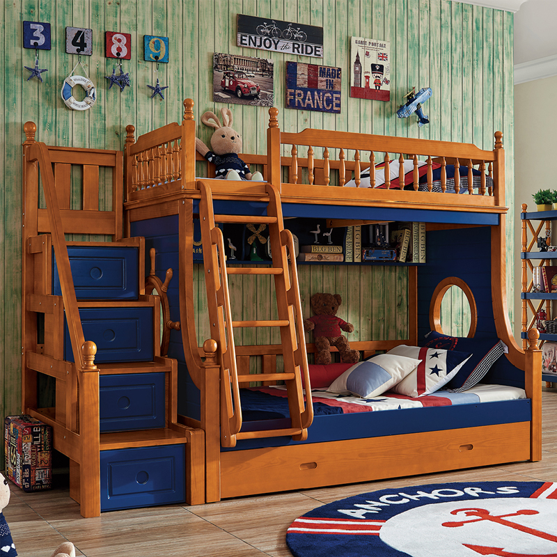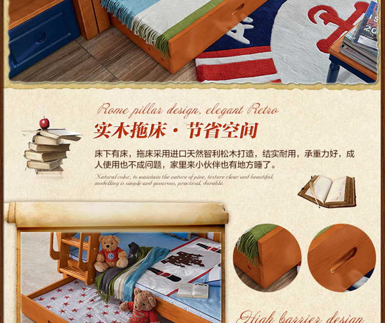 动漫居卧室实用高箱储物双层床 美式风格系列儿童床K2207