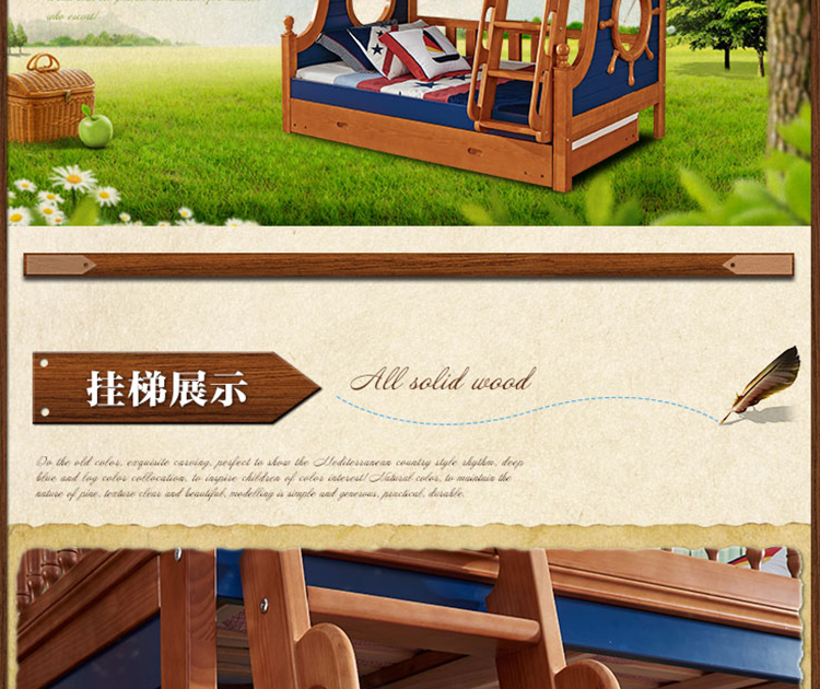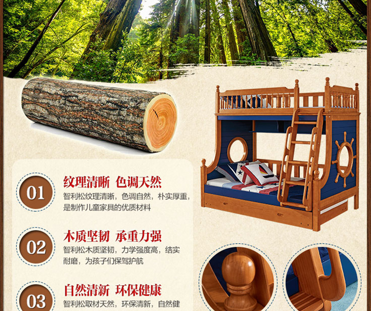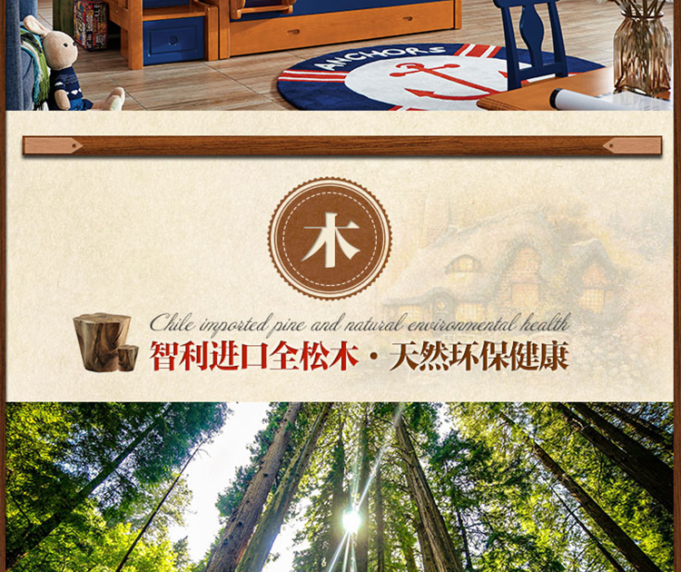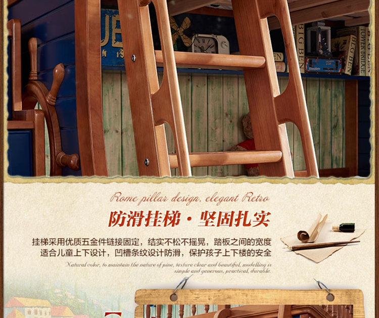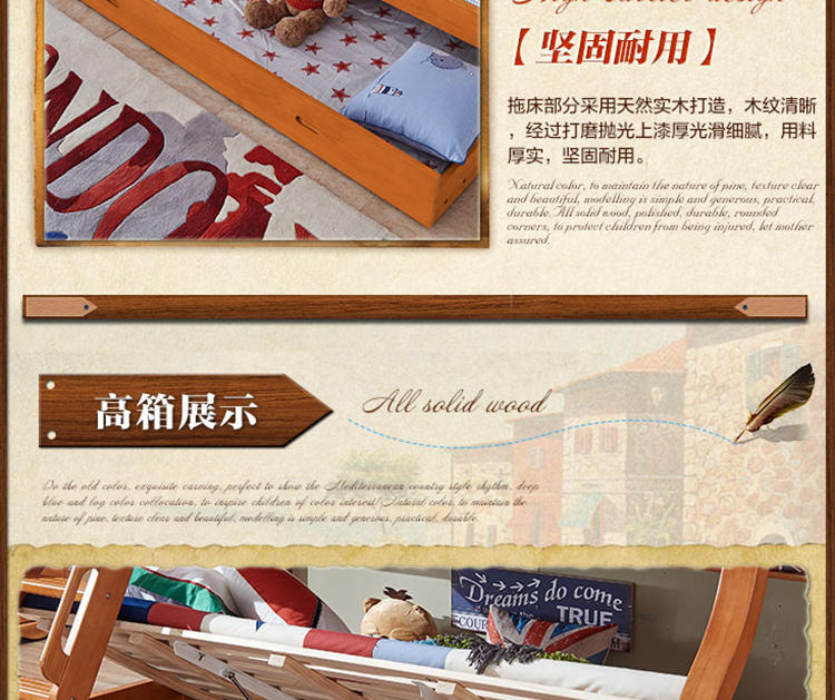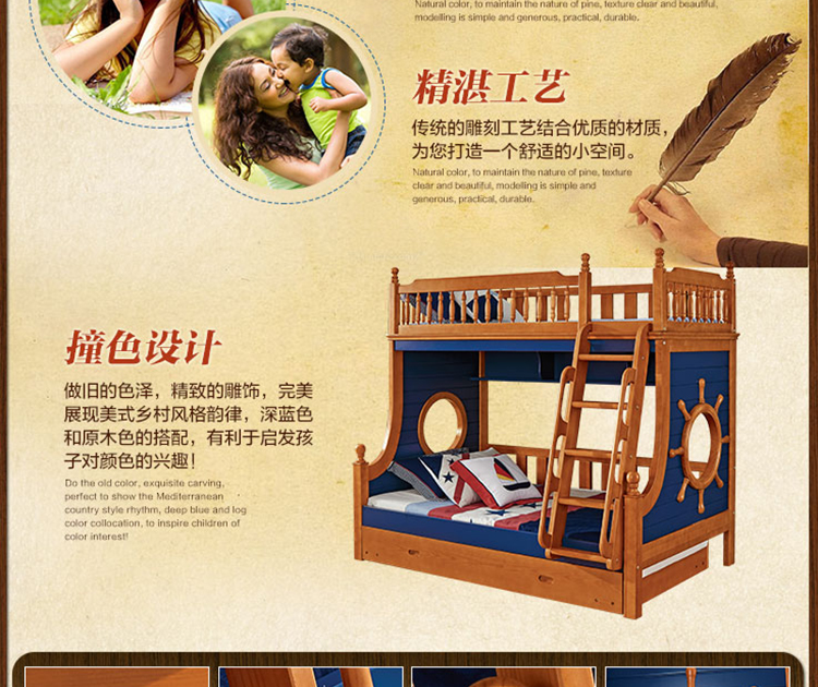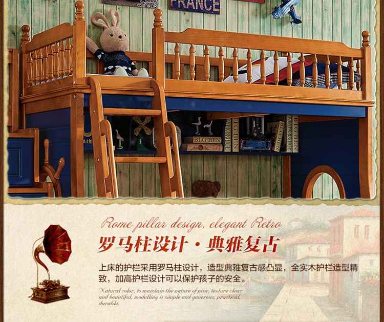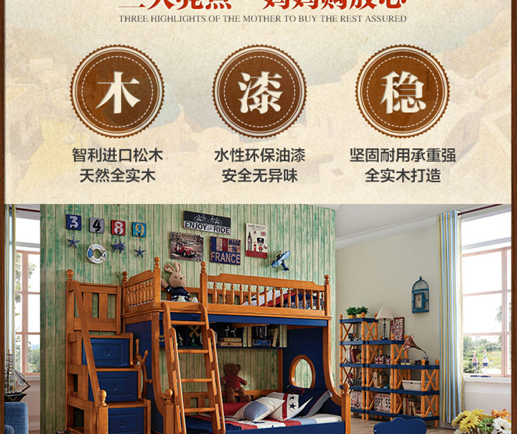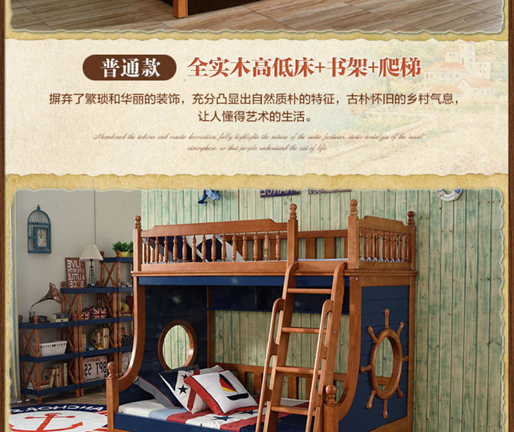 动漫居卧室实用高箱储物双层床 美式风格系列儿童床K2207