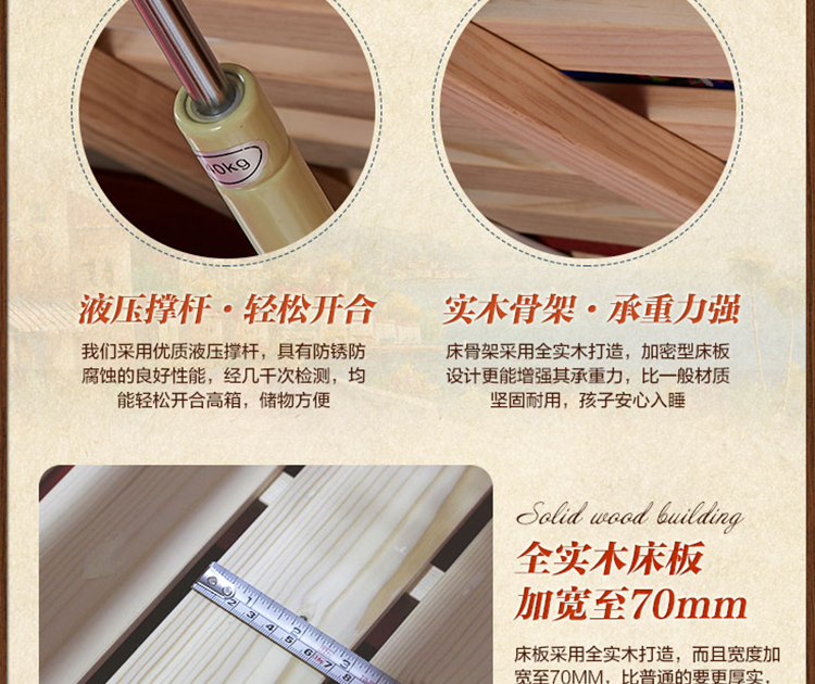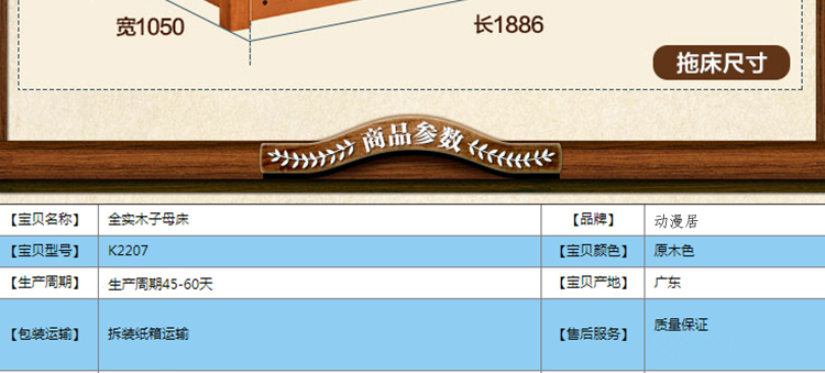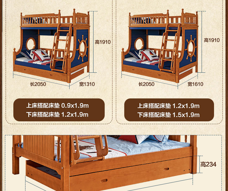 外围尺寸:K2207双层床1.2m2050*1310*1910mm; K2207双层床1.5m2050*1610*1910mm; F2-12气动床箱1895*1204*328mm; DG202拖斗1895*610*246mm; DG203拖床1886*1050*234mm; E2002楼梯柜1290*560*1890mm。