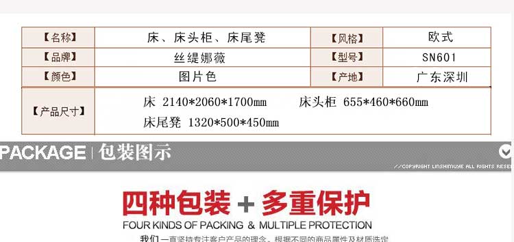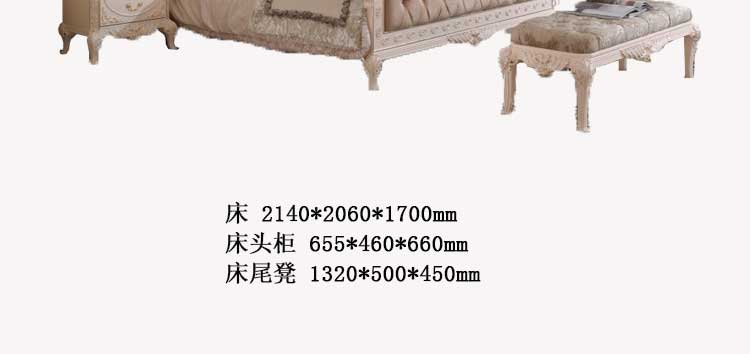 床 2140*2060*1700mm 床头柜 655*460*660mm 床尾凳 1320*500*450mm