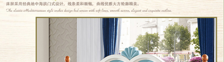 1】高端品质设计,时尚清新的地中海,非凡格调的设计风格,简约线条优美,优雅大气 ,严谨的工艺,奢华、高端大气、彰显高贵身份和品位。【2】采用进口橡木+环保高纤维板,环保板材,0甲醛,无异味保证【3】十八年金牌实体经营,工厂直销,支持线下体验