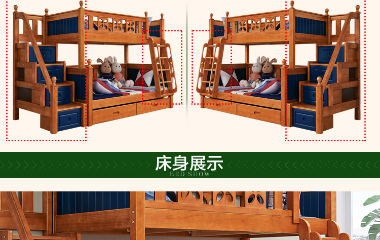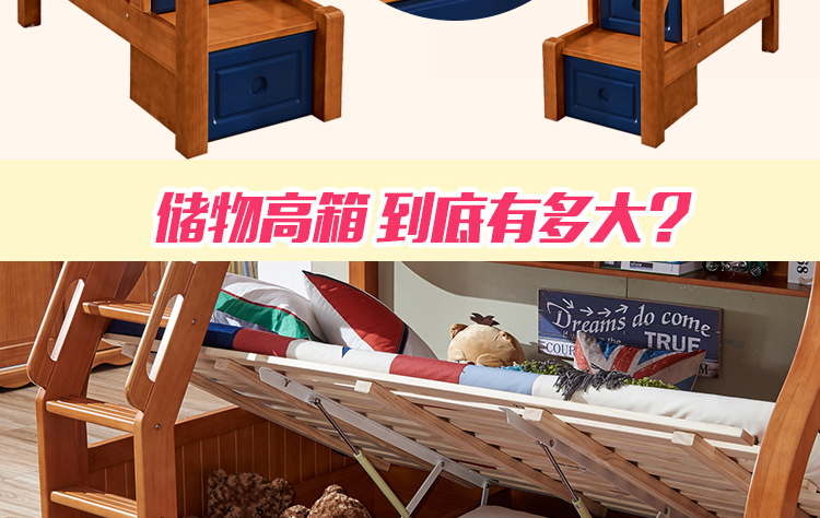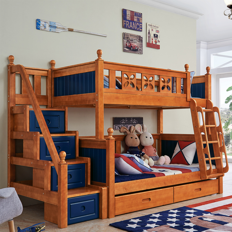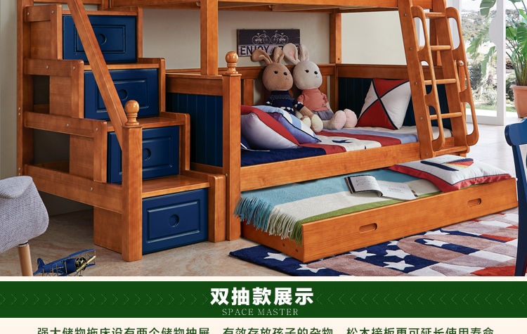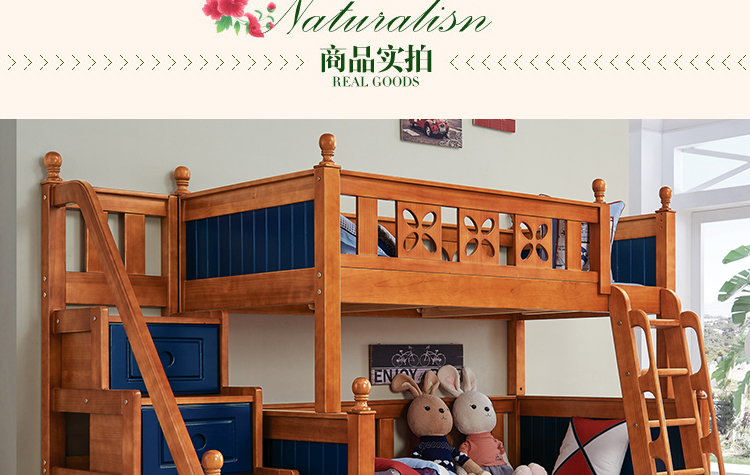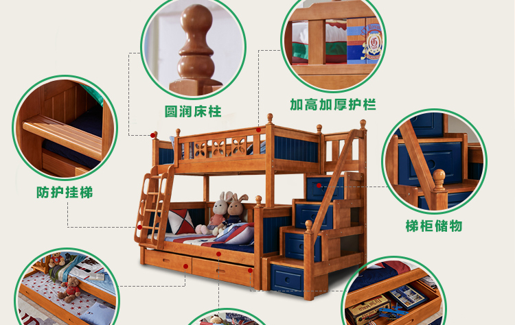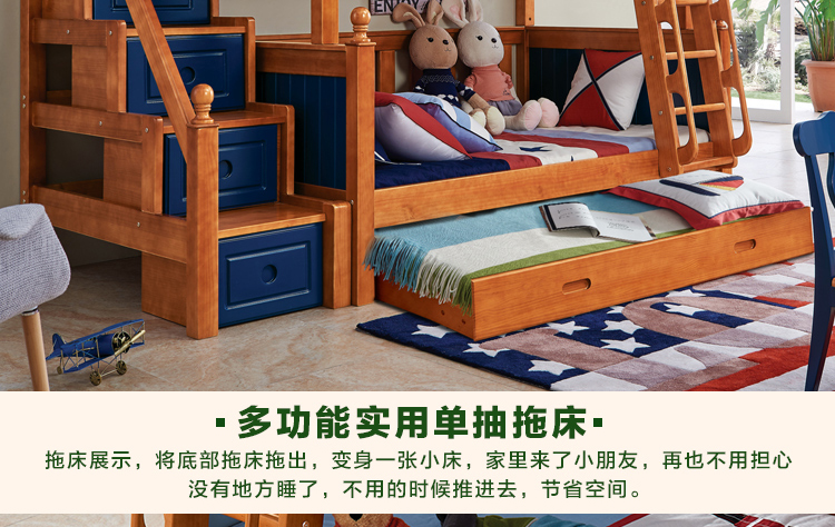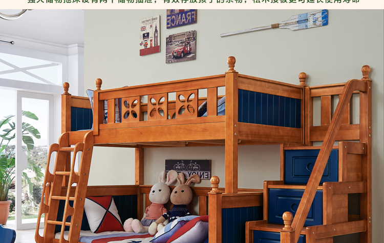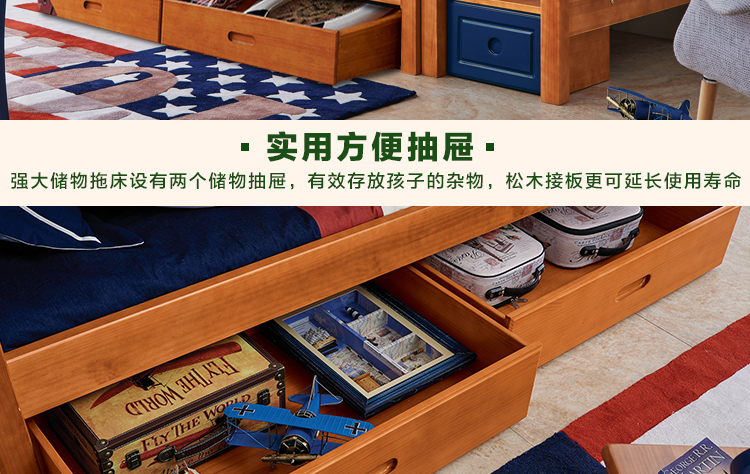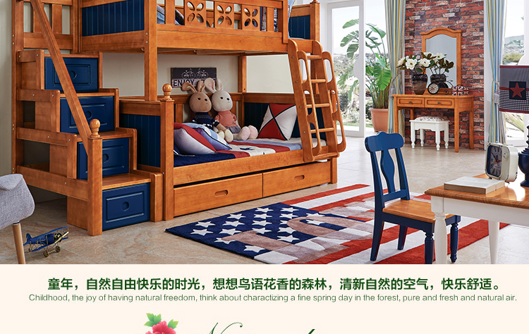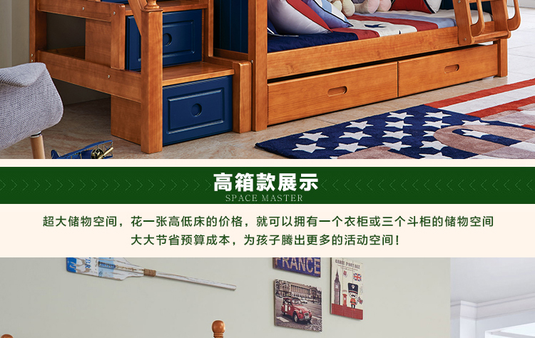 动漫居美式乡村风格卧室高箱储物实木儿童床男孩女孩双层床K2208