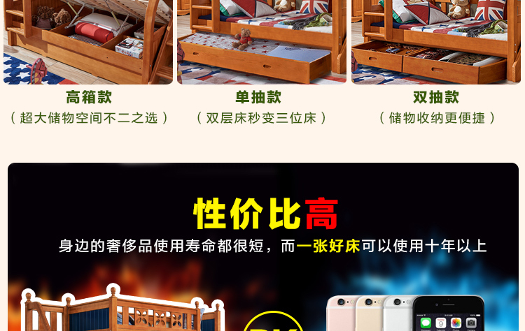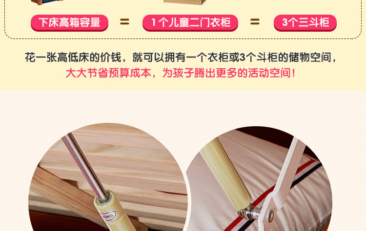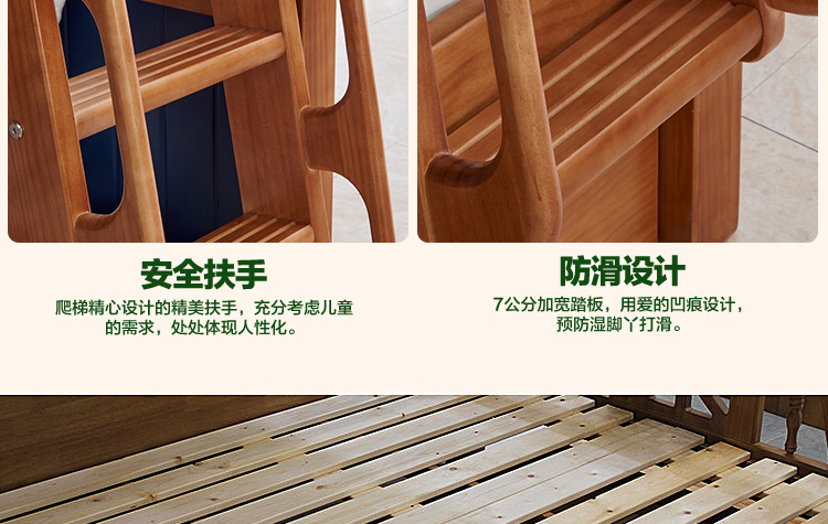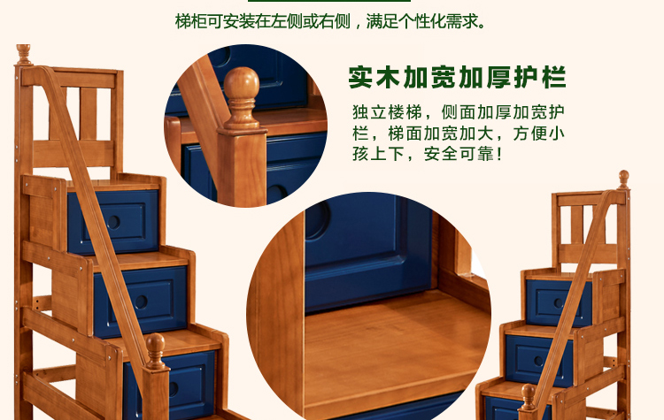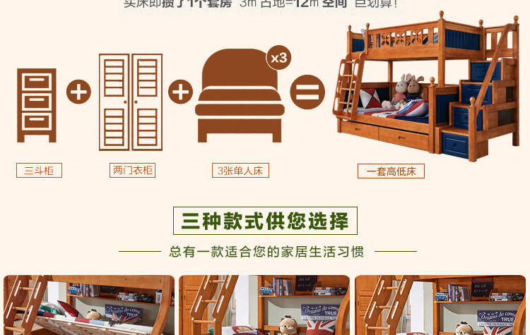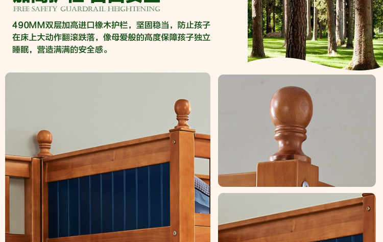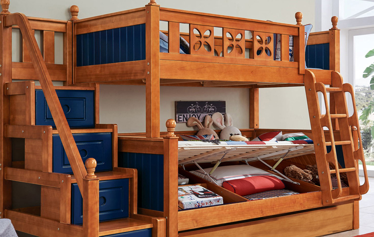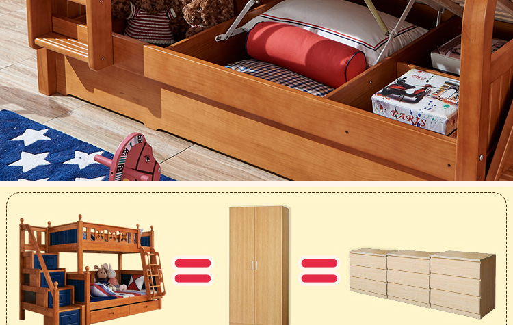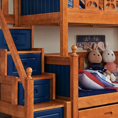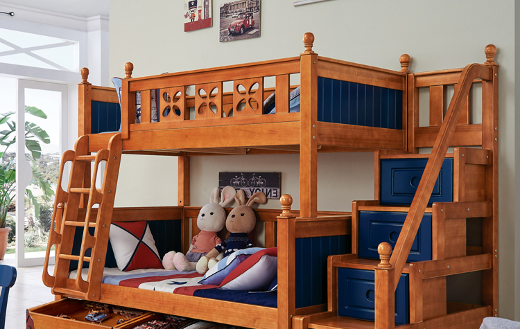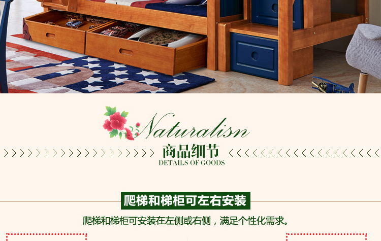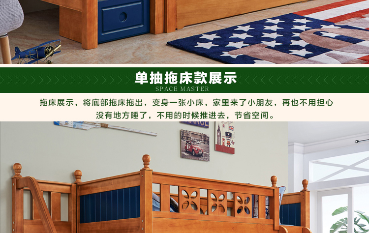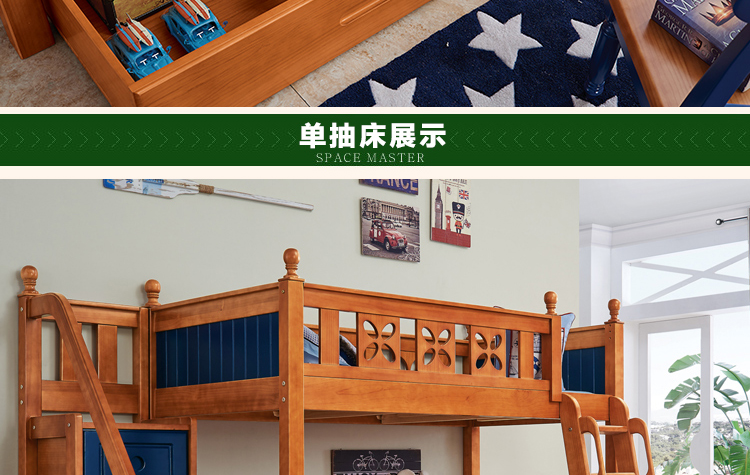 动漫居美式乡村风格卧室高箱储物实木儿童床男孩女孩双层床K2208