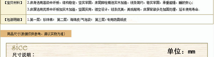 床的质量棒棒,做工精致,实木材质的非常的好,没有色差和气味,包装仔细收到的时候完好无损,价格实惠物超所值。 满意