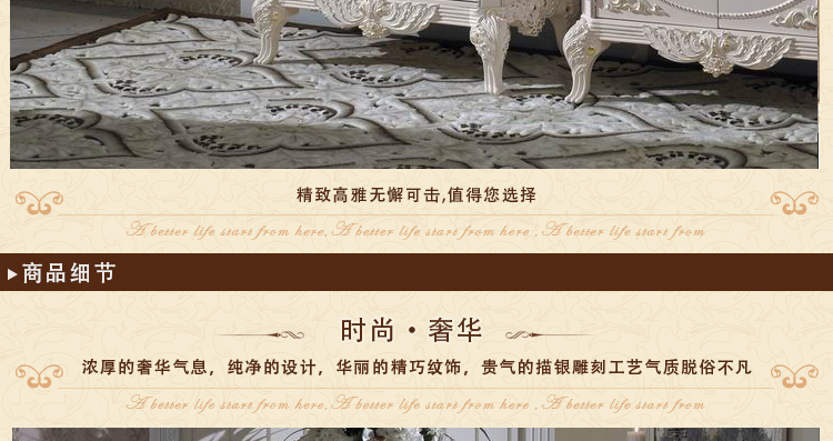 欧式田园风格,清新自然,使用美观大方。精致大气的设计,漂亮的细腻雕花,紧跟时尚潮流,尊贵成功人士的必选,您值得拥有。