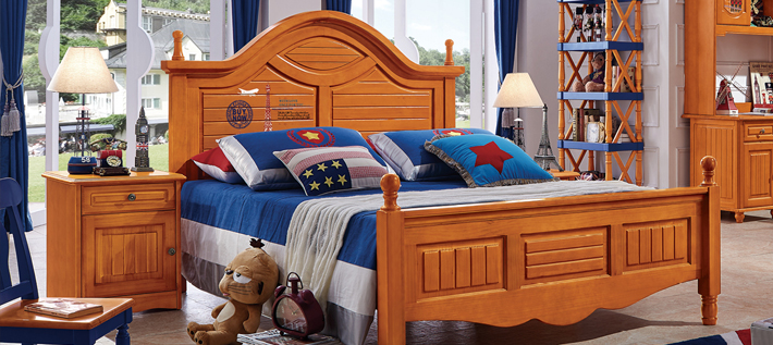 动漫居美式风格卧室储物儿童床头柜 实木储藏收藏床头柜B2901