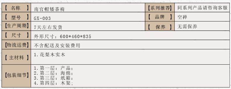 传统榫卯结构,预防开裂,结实耐用!采用花梨木手工制作,木质淳厚,放在家中,赏心悦目,格外雅致。设计新颖,个性美观。传统榫卯结构,牢固结实,不变形。品质保证。免漆做工精致,用料特别挑选,不上油漆,完全靠手工打磨,擦蜡,因为不上油漆,所以彻底杜绝了油漆的有害性,绝对健康环保。