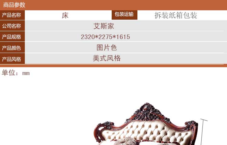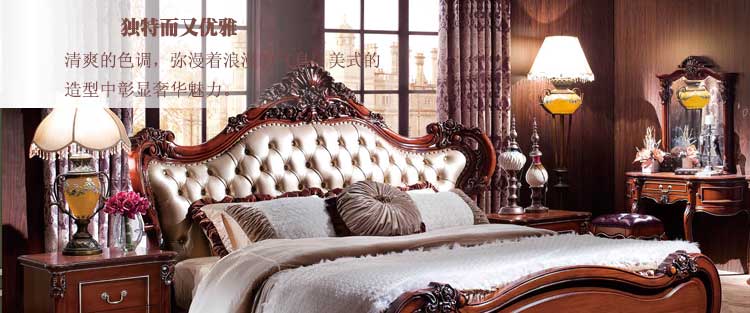 艾斯家美式玫瑰金乡村皮床双人床公主床大床小户型真皮床婚床软床8506