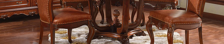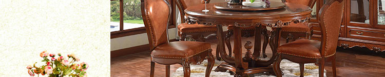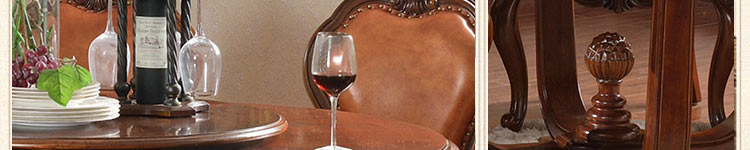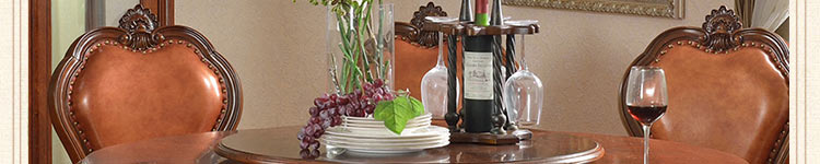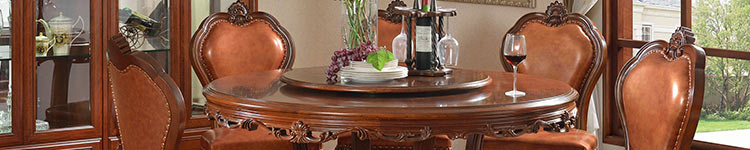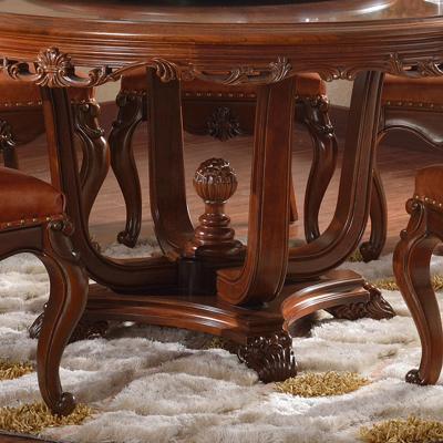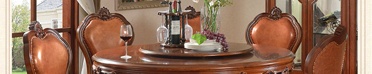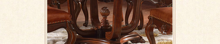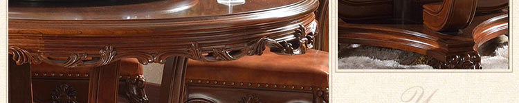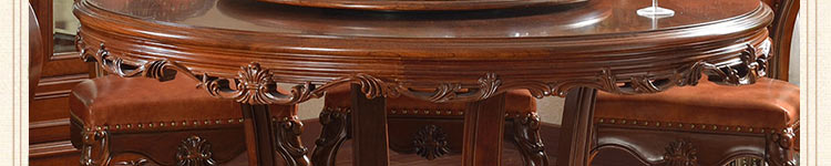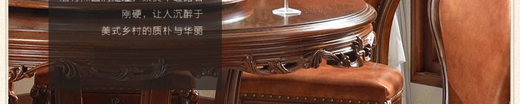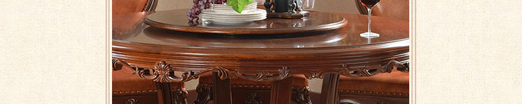 摩卡风情 美式圆餐桌美式雕花转盘圆形餐台实木橡木餐桌餐台木制圆桌