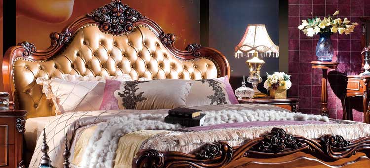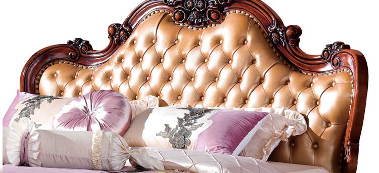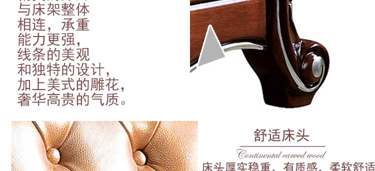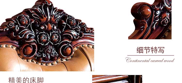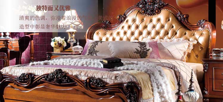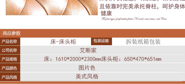艾斯家美式玫瑰金乡村皮床双人床公主床大床小户型床头柜真皮床婚床软床8503