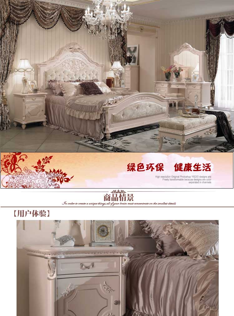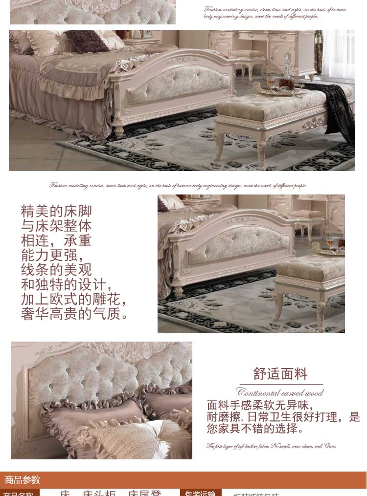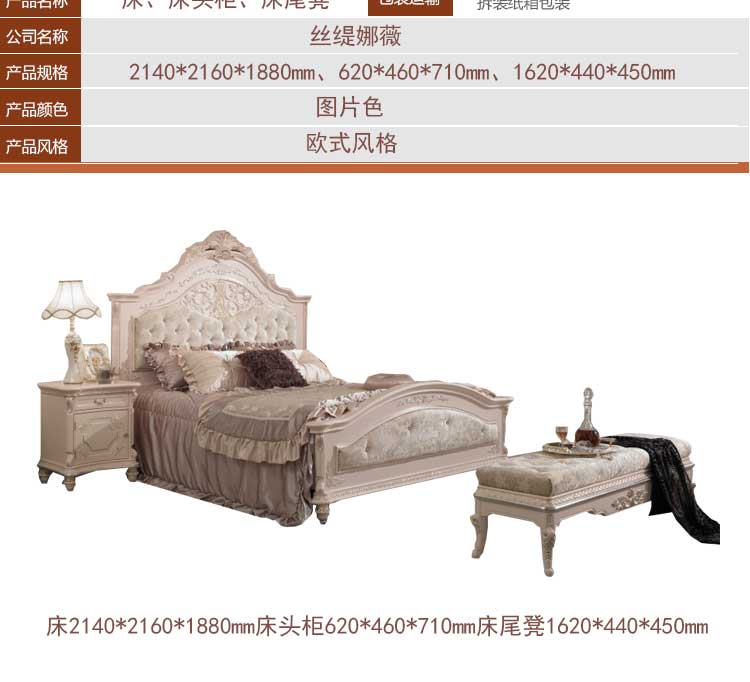 丝缇娜薇 欧式新古典床法式实木1.8米大床双人床床头柜床尾凳SN-616