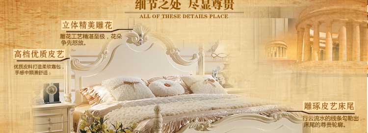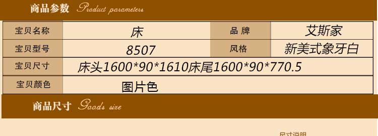 艾斯家美式象牙白乡村木床双人床公主床大床小户型床 8507