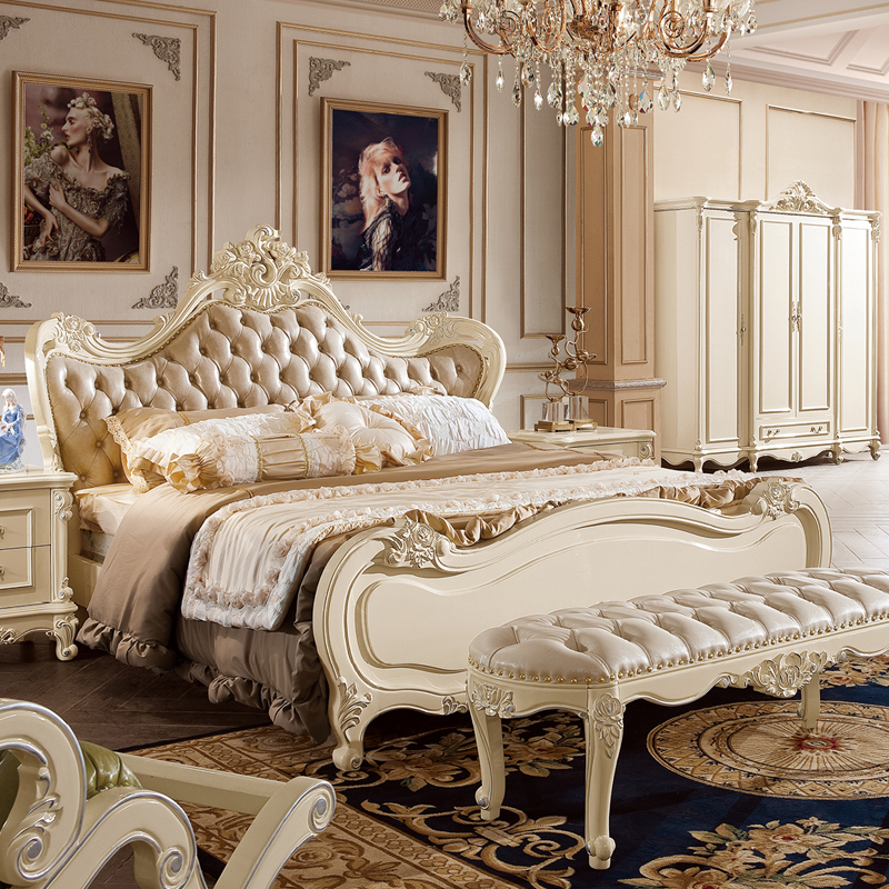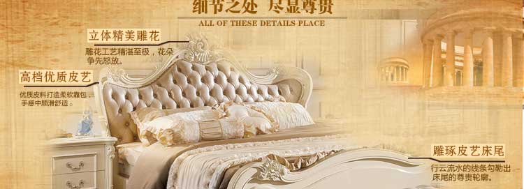 艾斯家美式象牙白乡村皮床双人床公主床大床小户型真皮床 8508