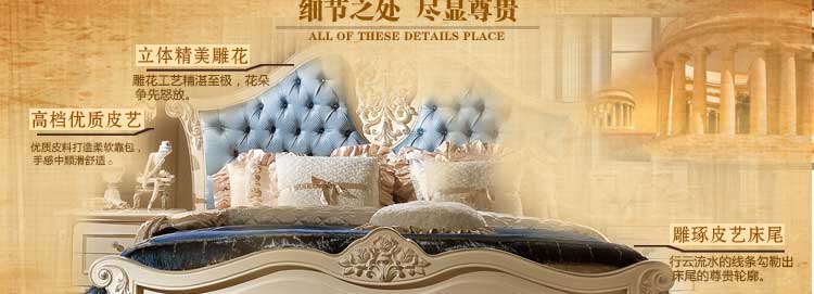 艾斯家美式象牙白乡村皮床双人床公主床大床小户型床 8509