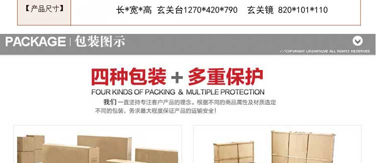 外围尺寸(长*宽*高):玄关台1270*420*790 玄关镜820*101*110mm