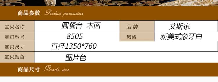 艾斯家 新美式象牙白 圆餐桌木面 8505