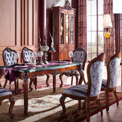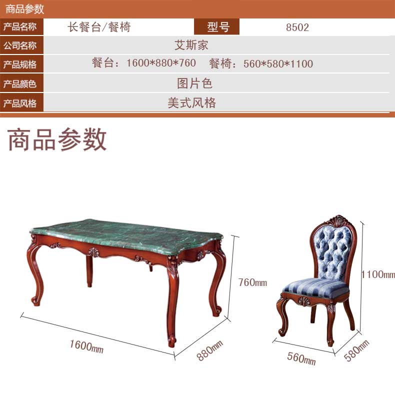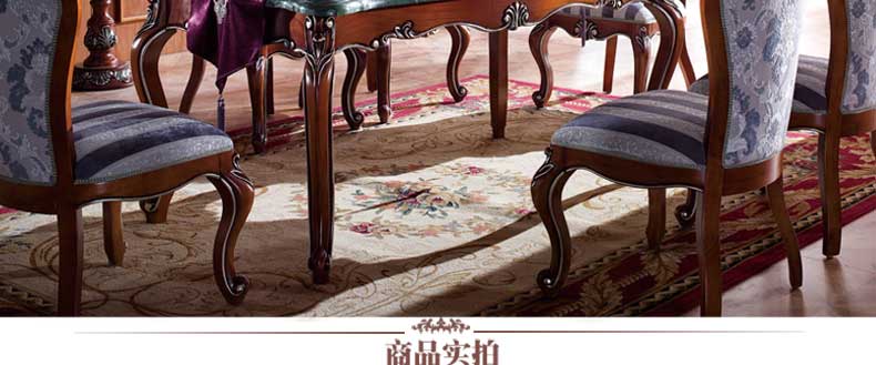 艾斯家玫瑰金实木长餐桌椅组合 酒店餐厅大圆餐桌美式大理石桌台饭桌8502
