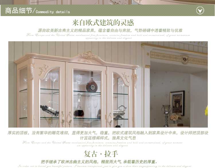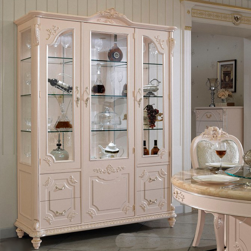 丝缇娜薇 欧式雕花奢华酒柜 客厅收纳柜储物柜玄关柜三门玻璃门实木酒柜 SN-616 酒柜