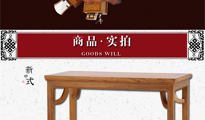 空禅新中式禅意家具明清古典案台酒店茶楼会所装饰复古实木霸王条案GX-017