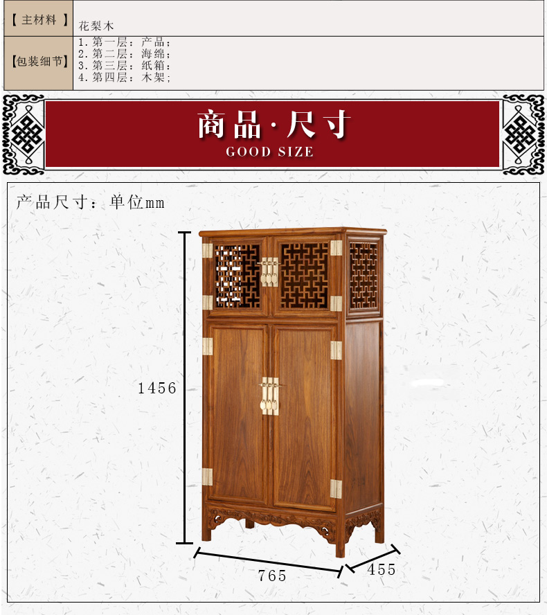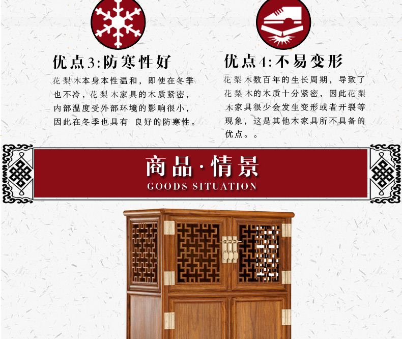 传统榫卯结构,预防开裂,结实耐用!采用花梨木手工制作,木质淳厚,放在家中,赏心悦目,格外雅致。设计新颖,个性美观。传统榫卯结构,牢固结实,不变形。品质保证。免漆做工精致,用料特别挑选,不上油漆,完全靠手工打磨,擦蜡,因为不上油漆,所以彻底杜绝了油漆的有害性,绝对健康环保。
