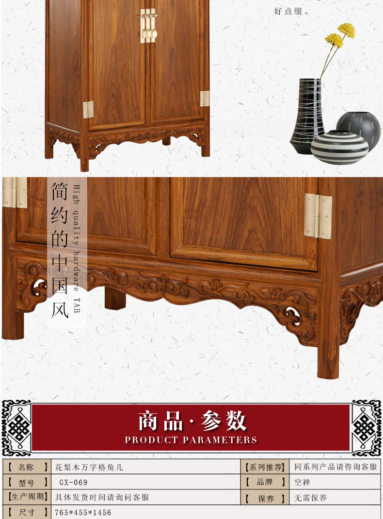空禅中式角柜门厅柜实木收纳柜客厅边柜角落柜子花梨木家具GX-069